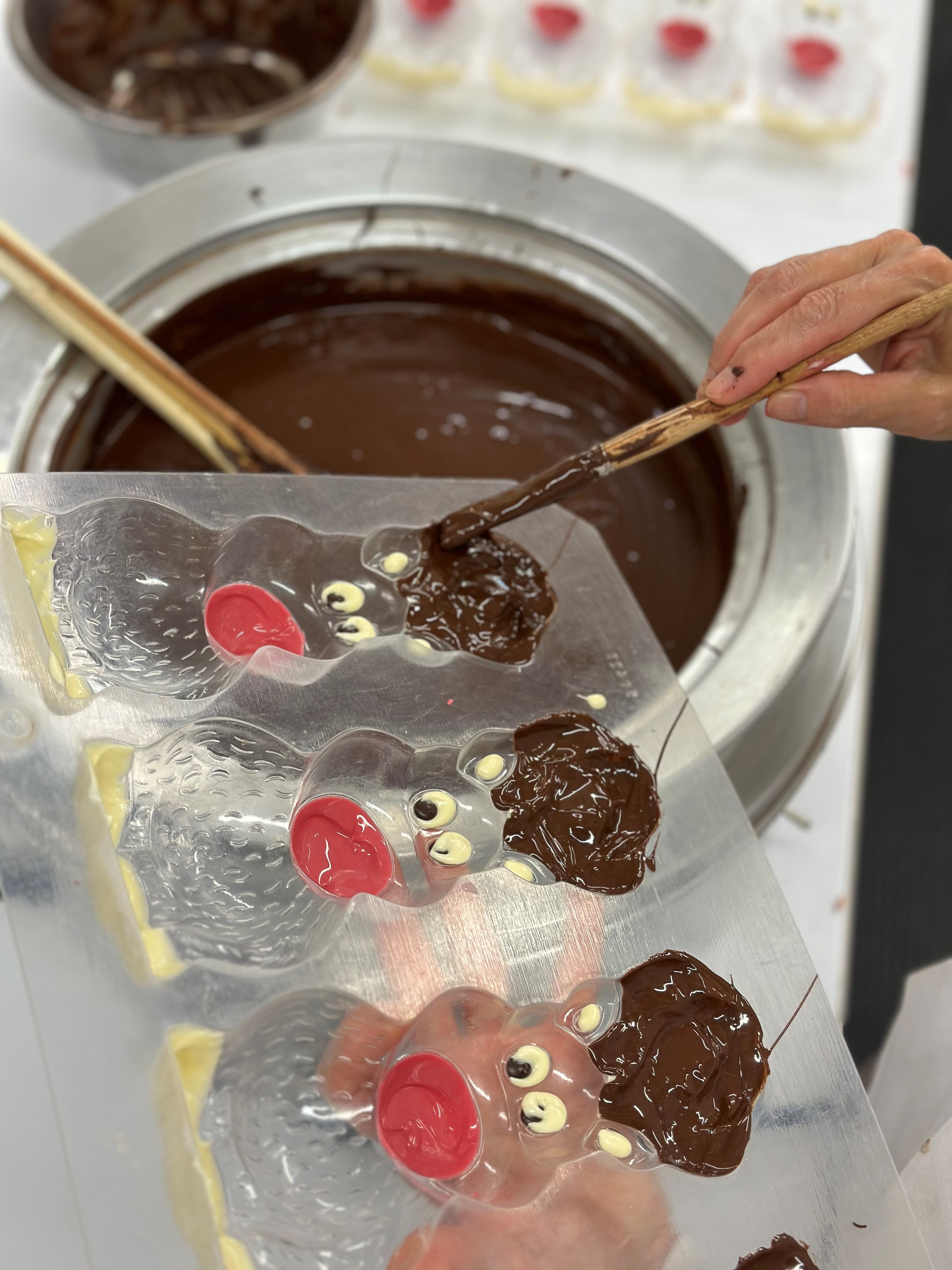 Vient ensuite le chocolat, fondant et généreux. Nos créations Fortwenger Chocolaterie - comme la cigogne en chocolat blanc et lait ou le mannele inspiré de la célèbre brioche - séduisent petits et grands. Des moulages peints à la main pour que chaque pièce soit une promesse de plaisir.